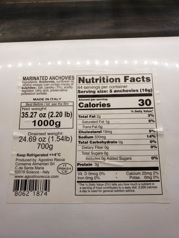 2.20 lb tray (1.50 of drained weight) Marinated Anchovies from Italy